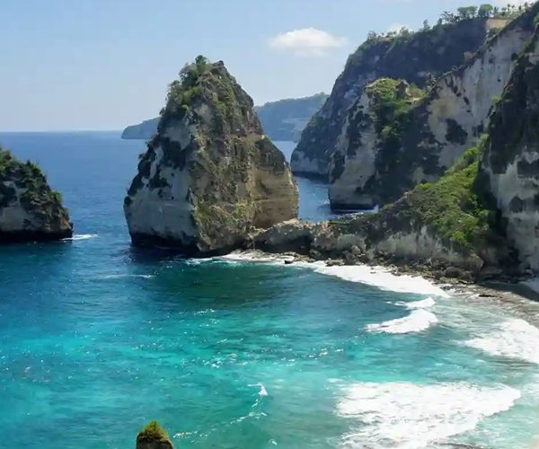 After enjoying lunch at a local restaurant, the tour proceeds to West Nusa Penida. Here, you will explore the natural wonders of Broken Beach (Pasih Uug) and Angel’s Billabong, a natural infinity pool formed by the ocean. The adventure continues to the world-renowned Kelingking Beach, famous for its T-Rex-shaped cliff and spectacular viewpoints. If time allows, you will also visit Paluang Cliff, another scenic spot overlooking the Indian Ocean.